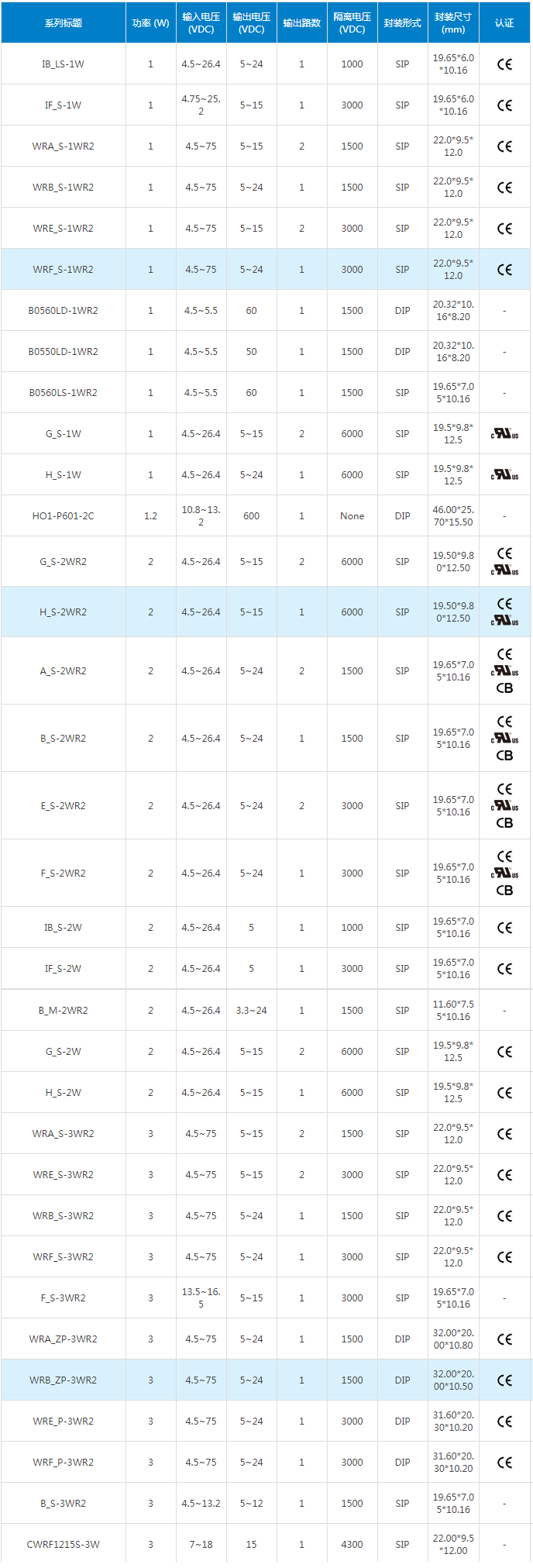 0.25-3W (SIP/DIP) 鼠标点击图片放大 产品名称: 0.25-3W (SIP/DIP) 公司名称: 龙睿科技官方网站 产品型号: 12 产品简介: 该系列产品覆盖数千个型号,广泛应用于工业控制、电力、仪器仪表、医疗电子、轨道交通、通讯通信等多个行业。 详细说明 1、隔离型模块电源,输出功率0.25W-3W 2、标准SIP单列直插、DIP双列直插式封装 3、工作温度范围可满足:-40 to +105℃ 4、隔离电压可满足:1000VDC-6000VDC 5、全系列满足RoHS指令,产品可满足UL、CE、医疗认证 6、R3系列均衡提升了输出短路保护、容性负载能力、空载功耗、轻载效率和软启动等性能