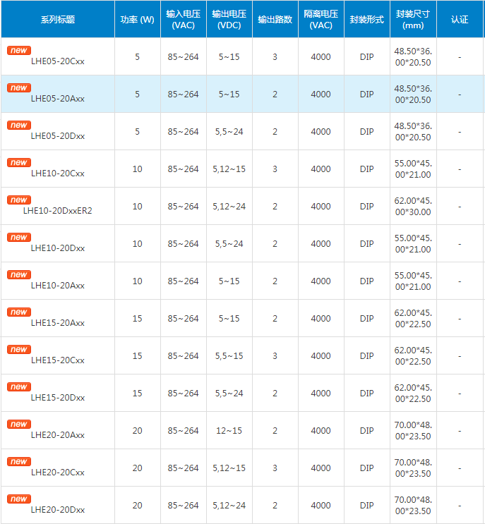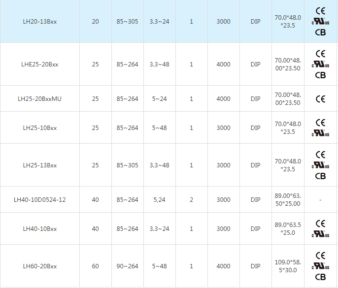 3、LH系列工作温度范围:-40°C至+70°C,LHE系列工作温度范围:-40°C至+85°C