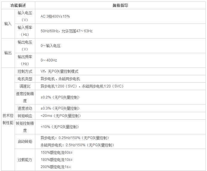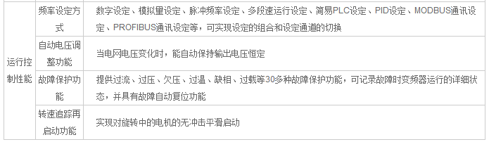 良好的控制性能:1:200的调速比(SVC)、0.25Hz/150%的启动转矩、多种制动模式,无需制动电阻就可以实现的快速磁通制动模式。