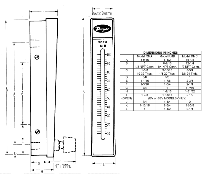 | 型号 RMA-2"刻度 | 型号 RMB-5"刻度 | 型号 RMC-10"刻度 | |||