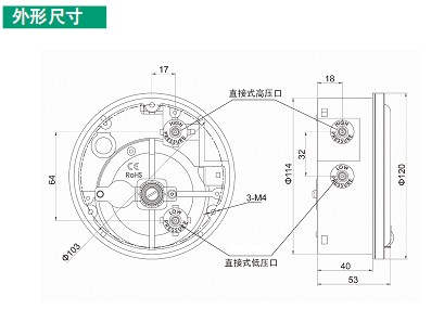 过程连接:两对Φ5软管直插接嘴,即侧面和背面各一对,任选其一。