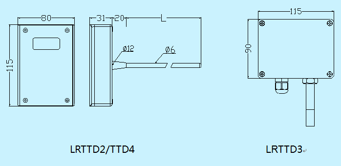 l 用于风管(LRTTD2)、水管(LRTTD4)、室外(LRTTD3)温度检测和控制