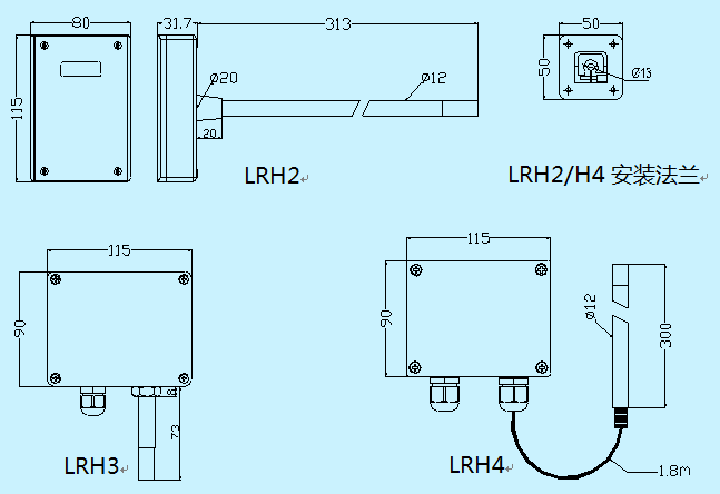 注:LRH产品由湿度回路供电,所以此回路必须使用,否则产品无法正常工作。