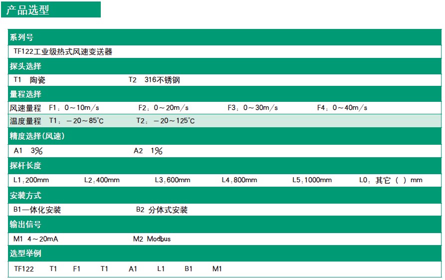 精度: 风速:3%F.S和1%F.S可选